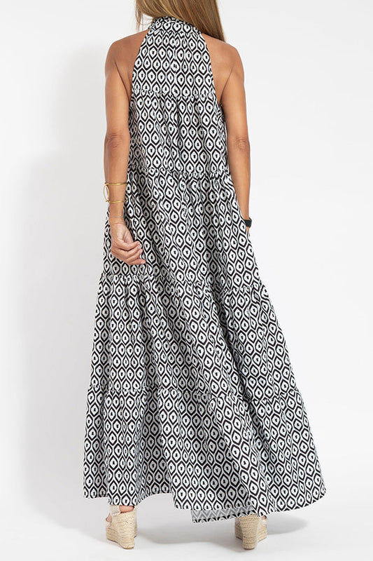 Boho Floral V Neck Button Lace Sleeve Holiday Beach Maxi Dress