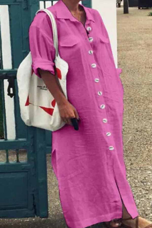 Casual Solid Buttons Mandarin Collar A Line Dresses