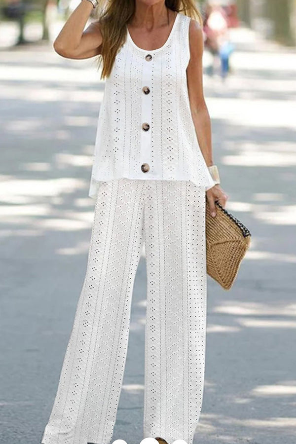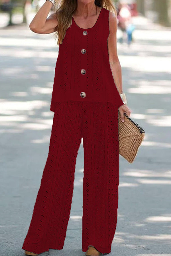 Solid color hollow fluorescent color sleeveless vest trouser suit